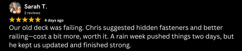 Steps, porches, walkways, and repairs that match existing materials perfectly. Tight joints, durable finishes that belong.